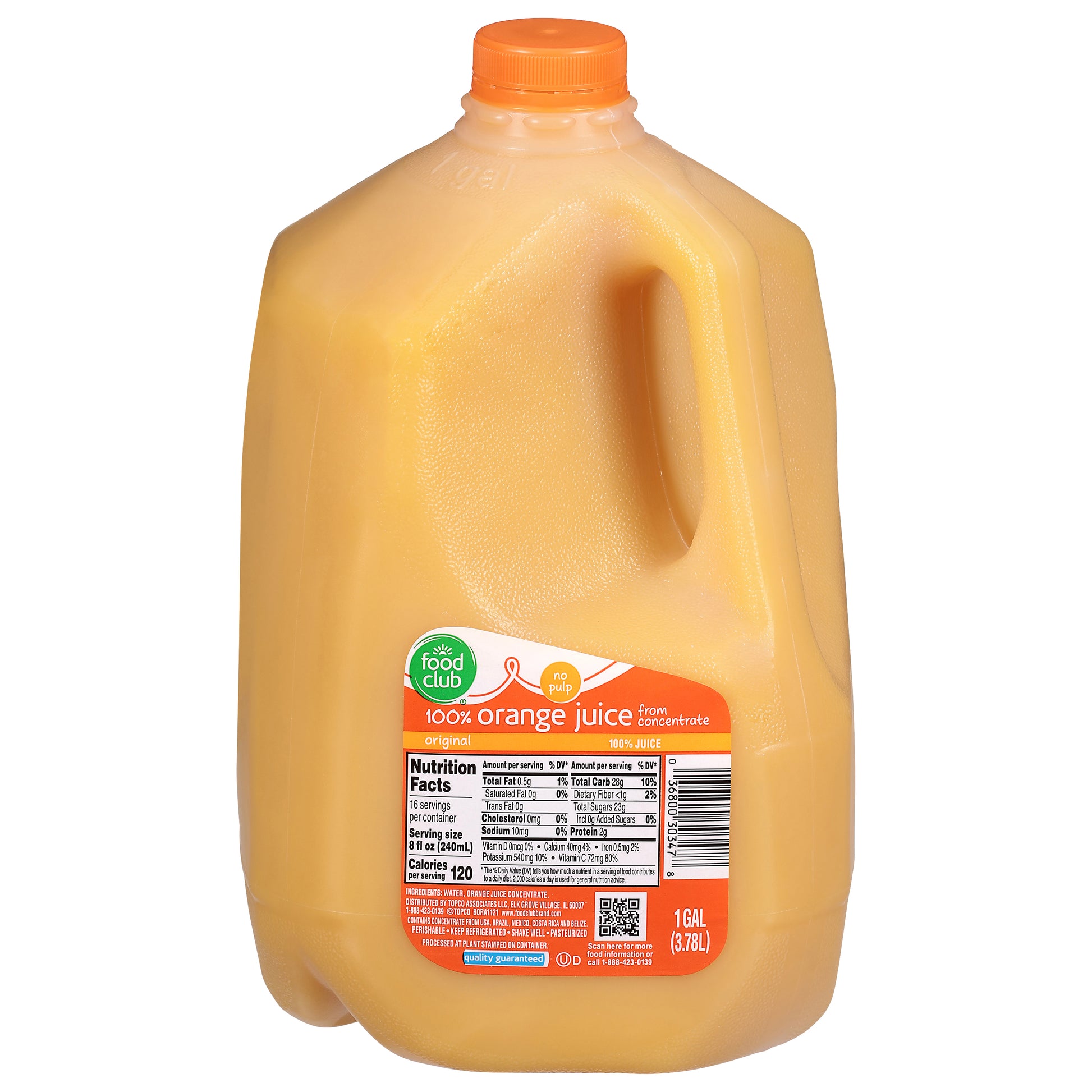 Food Club No Pulp Original 100% Orange Juice 1 gal