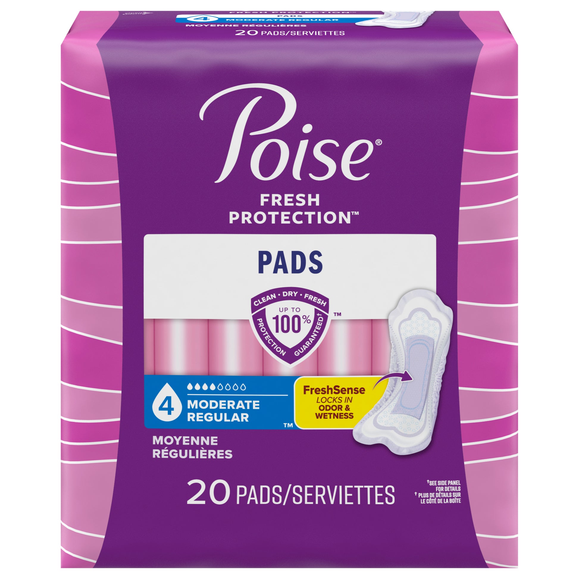 Poise Incontinence Pads & Postpartum Incontinence Pads, 4 Drop Moderate Absorbency, Regular Length, 20 Count (Packaging May Vary)